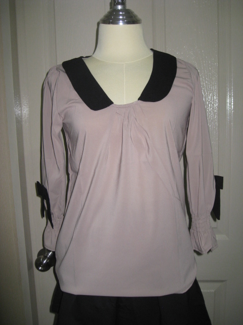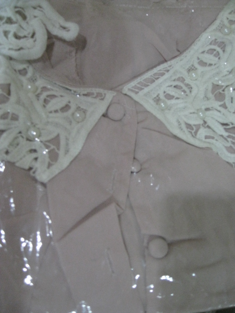 แซกสีดำคอปกสีขาวแขนแต่งระบายลูกไม้สีดำ ราคา 380 บาท