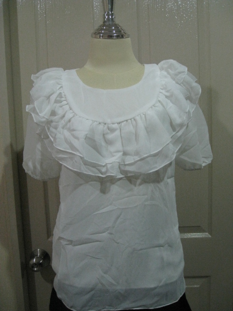 เสื้อผ้าชีฟองพิมลายตัวนี้น่ารักมากคะ ครบสี ขาว ดำ น้ำเงิน กระดุมผ่าหน้า ทรงปีกค้างคาว ราคา 330 บาท(รวมส่ง)