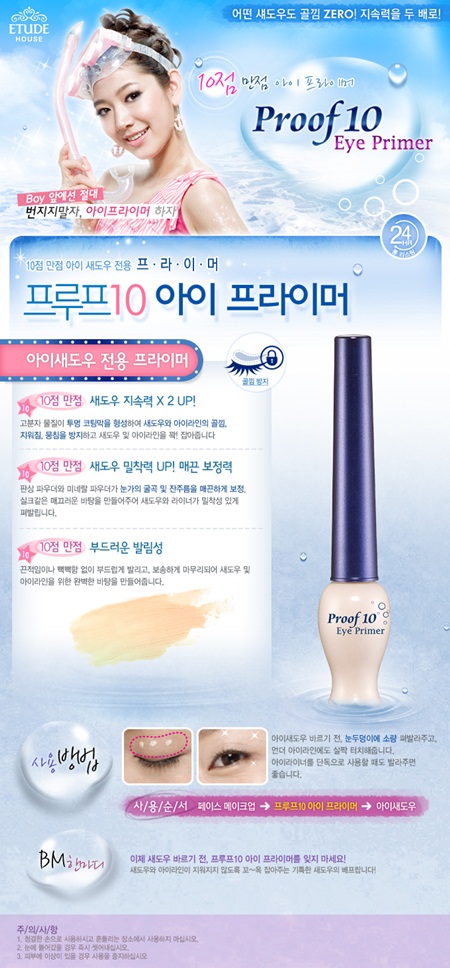 17.Etude House Proof 10Eye Primer ไพรเมอร์พรูฟเทนรองพื้นเปลือกตา ลดรอยหมองคล้ำรอบดวงตา ให้อายแชร์โดติดทน กันน้ำ กันเหงื่อได้ตลอด 24 ชม. ราคา 250 บาท