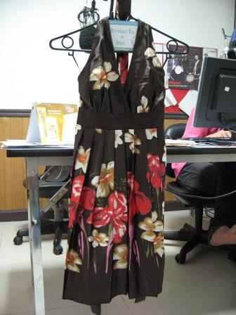 **เดรสผูกคอผ้าซาติน สีน้ำตาลลายดอก น่ารักมากค่ะ สถาพเหมือนใหม่ ใส่ 1 ครั้ง
