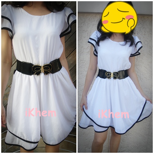 เดรสชีฟองสีขาว แบบหวานคุณหนูมากๆค่ะ ตรงแขนเป็นระบายเป็นชั้นๆขลิบดำ กระโปรง 2 ชั้นเล่นระดับขลิบชายสีดำ ซับในทั้งตัว ไม่บางนะคะ หาเข็มขัดน่ารักๆมาคาดก็สวยแล้วจ้า ของใหม่นะจ๊ะ ใส่ถ่ายรูปแปบเดียวไม่ถึง 5 นาที ราคา 200 บาท (ไม่รวมเข็มขัดค่ะ)