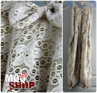 009: จั้มสูทยาว คอผูกปรับสายได้ กระเป๋าด้านข้าง ลูกไม้สีครีมคะ