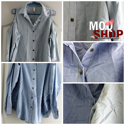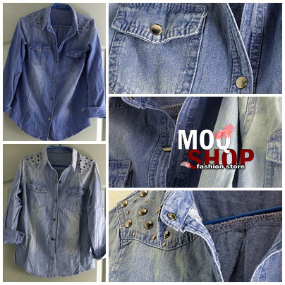 [B]009: เสื้อยีนส์แขนยาว ผ้านิ่มอีกแล้วคะ รูปแบบปักหมุดตรงไหล่คะ