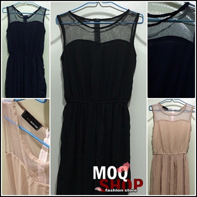 New Arrive : Dress สั้น ช่วงบนเป็นตาข่าย ซิบด้านหลัง ส่วนกระโปรงอัดพลีท