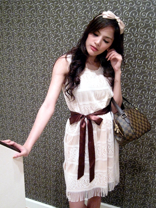 Cute 11: เดรสผ้าโปร่ง December no. 5 ค่ะ ฟรีไซด์ เห็นเรียบๆแบบนี้ใส่แล้วเก๋มาก เพิ่มสร้อยให้เยอะๆเข้าไว้ค่ะ