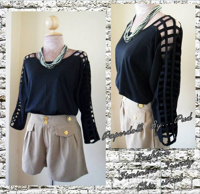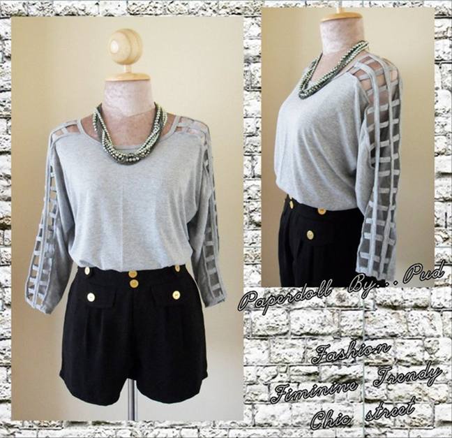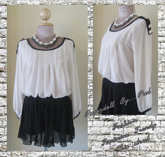 เสื้อชีฟองเกาหลี แต่งกระดุมบนบ่า