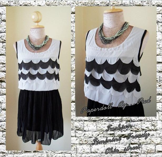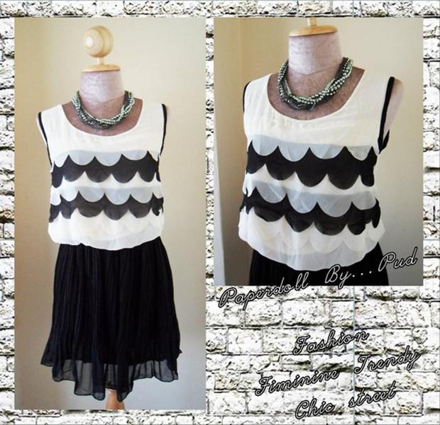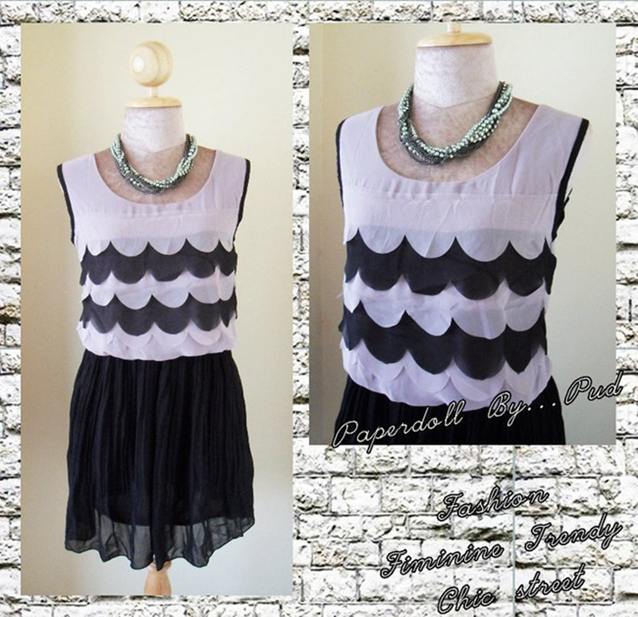 เดรสผ้าชีฟอง แต่งอกเป็นลายลูกคลื่นน่ารัก