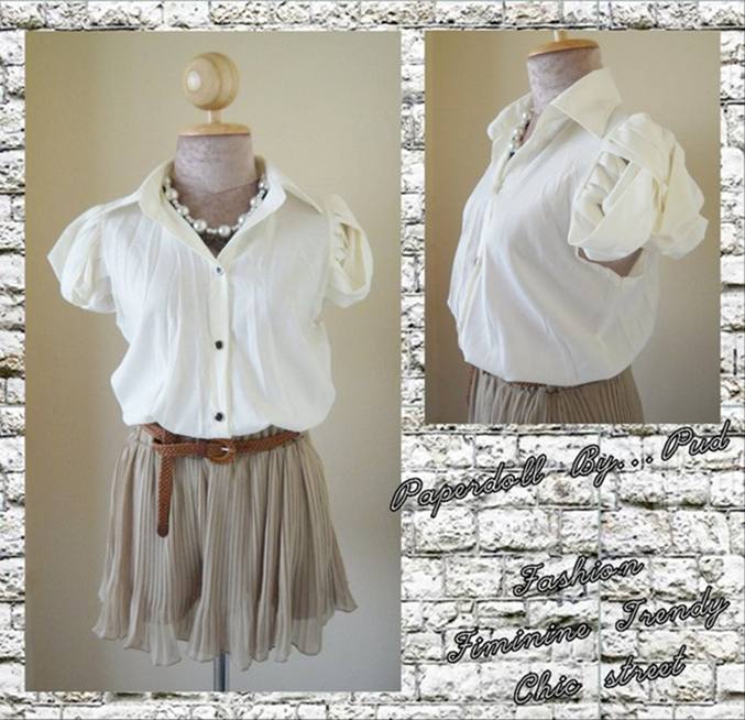 Chiffon Korea แต่งกระดุมบ่า / cream