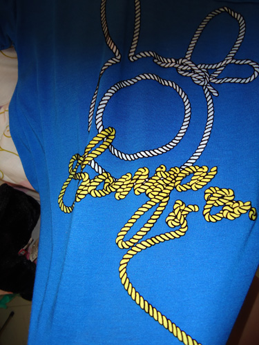 เสื้อยืดสีเทาตัวใหญ่ค่ะ มีตาข่ายแล้วก็เป็นตัวอักษรเขียนว่า for get me not