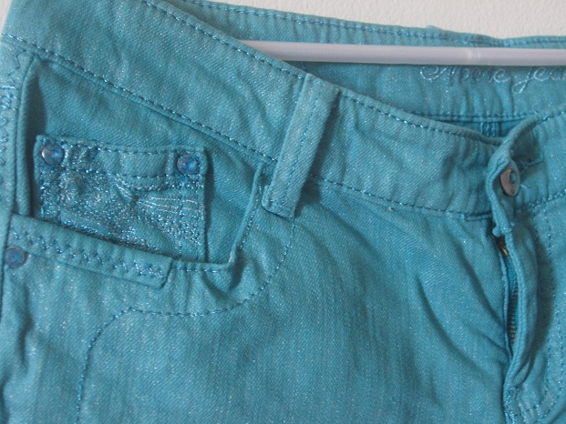 155. กางเกงขาสั้ยยีนส์สีฟ้าอมเขียว กระดุมคริสตัลล ตกเเต่งด้วยเลื่อมรอบกางเกง สวยมากๆค่ะ