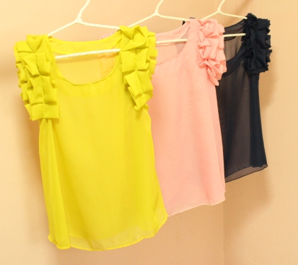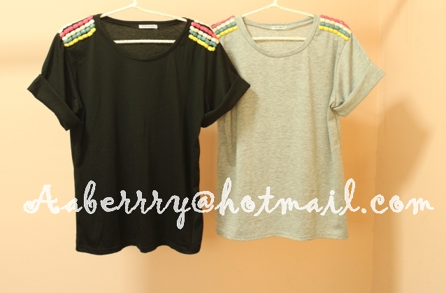 NEW NEW !!!!! 627- เสื้อยืด T -Shirt คอกลม แขนสั้น งานสไตล์แบบ Topshop แขนสั้นพับแขน ผ้ายืดนอกเนื้อดีนิ่มมากคะ ไหล่ประดับพลาสติกอย่างดีสีสันน่ารัก ตัวนี้งานนอกนะคะ ผ้าเนื้อนิ่มมากใส่สบายคะ