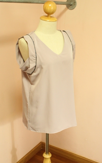MUST HAVE !!! 502- เสื้อชีฟองแขนกุด บ่าหมุด งานดีไซต์ สไตล์ balenciaga ใส่ออกมาเรียบหรูไฮโซมากๆค่ะ :cool: (ออเดอร์ LOTสีที่ 7)