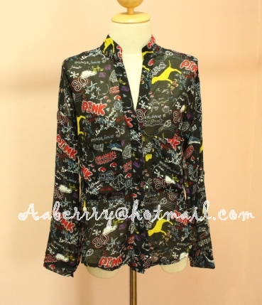 NEW NEW !!!!! 573- เสื้อเชิ้ตแขนยาวตัวสั้น ลายกราฟิก ผ้าญี่ปุ่น ด้านหลังชายเสื้อจะเก็บทรงหุ้มชายงอเข้ามานิดหน่อยๆ ทำให้ไม่ดูชายเสื้อ-ปล่อยโคล่งจนเกินไป เก๋ค่ะ ใส่ขึ้นมาดูดีมีสไตล์
