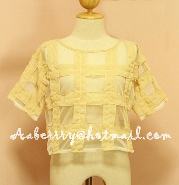NEW NEW!!! 577- เสื้อชีฟองแขนสั้น งานสไตล์ Brandname (สานตารางผ้าชีฟองสลับกับผ้ามุ้ง) ใส่ขึ้นมาดูดีมากๆค่ะ สีครีมไข่ไก่