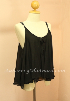 NEW NEW !!! 650A- เสื้อกล้ามผ้าชีฟองสีดำ รอบคอเเละรอบวงเเขนแต่งเหลื่อมสีดำ