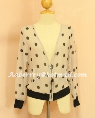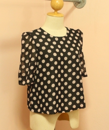 NEW NEW !!!!! 570B- เสื้อชีฟองคอกลม ลายจุดสีดำจุดฟ้าแขนสามส่วน กระดุมหลัง มีซับในทั้งตัว (ไม่โป้ค่ะ) ใส่ขึ้นมาน่ารักมากๆคอนเฟริ์มค่ะ!!!!!