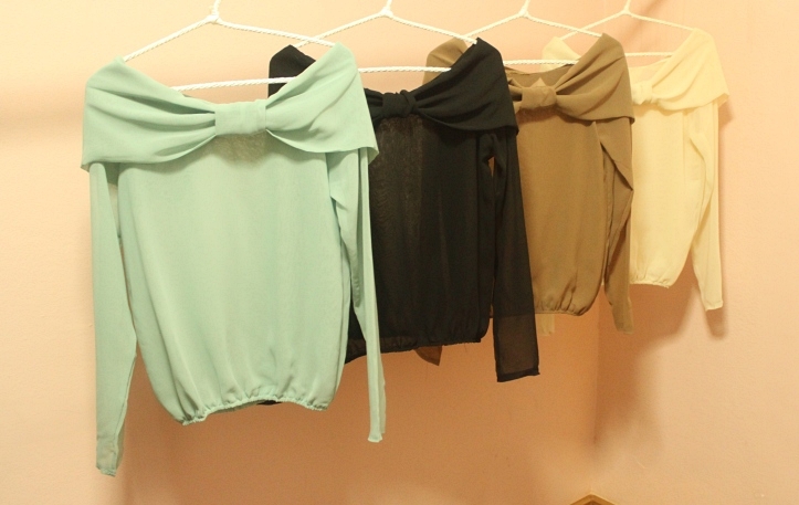 NEW NEW !!!507- เสื้อเเขนยาว ชีฟองคอโบว์ เปิดไหล่นิดๆค่ะ ใส่ขึ้นมาสวยหวานมากมากเลย