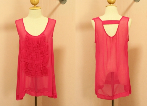 NEW NEW!!! 506B- เสื้อแขนกุดชีฟอง คอวี บ่าชั้นติดกระดุม งานเกาหลี ผ้าชีฟองนอกเนื้อดีใส่สบาย สีชมพู