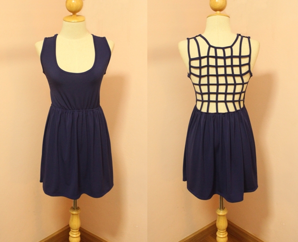NEW NEW !!!!!402A- Dress ผ้ายืด แขนกุด คอถ่วง กระโปรงพองช่วงสะโพก สีน้ำเงิน ผ้ายืดเนื้อดีทิ้งตัว ใส่แล้วอำพรางหุ่นสุดๆๆค่ะ confirm!!