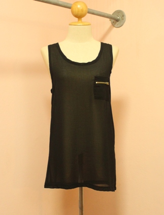 NEW NEW!!! 647A - เสื้อแขนกุดผ้ายืด สีดำ ผ้ายืดเนื้อนิ่ม ทรงทิ้งๆ -Free size มีกระเป๋าข้าง 2 ข้าง.. (จะเอาไปใส่ทับกะเสื้อกล้ามกางเกงยีนส์เหมือนพวกโอเว่อร์โค้ดก้อเก๋ๆค่ะ