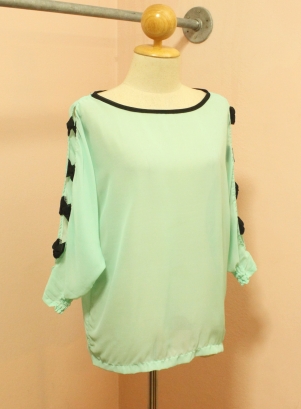 NEW NEW !!! 539A- เสื้อลูกไม้แขนสั้น สีดำ ทรงสวยค่ะ เอาไปแม็ตซ์ได้หลายเเนวค่ะ