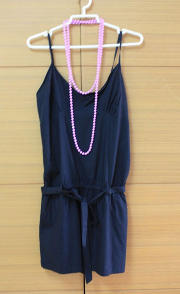 7.มินิเดรสลาย pink polka dot ตัดกับพื้นสีน้ำเงินเข้มอย่างลงตัว ผ้าตัวในเป็นสีครีมสวยหวานค่ะ สายปรับได้ อกไม่เกิน 34 ของใหม่ 200-.