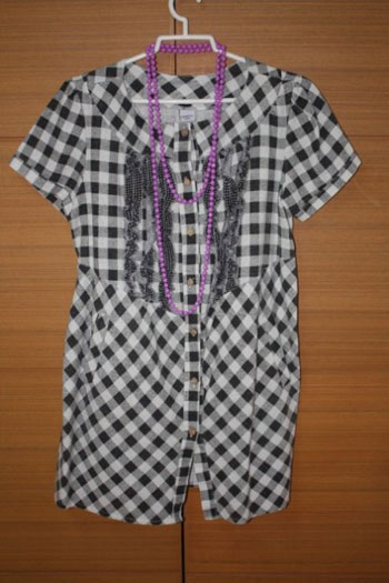 12.เสื้อตัวยาว หรือมินิเดรสลายสก็อตขาว-ดำ ใส่ 1 ครั้ง 150-.