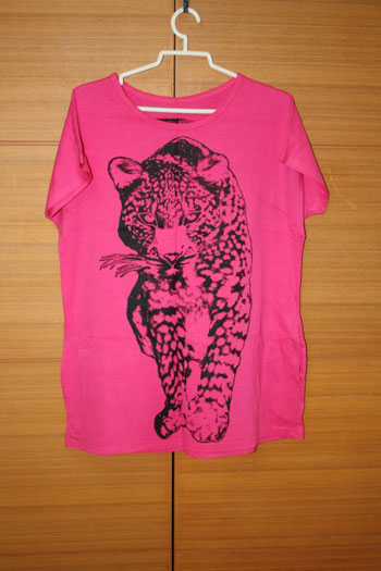 22.เดรสชมพูบานเย็น สกรีนเสือสาว มีกระเป๋าทั้ง 2 ข้าง ใส่ 2 ครั้ง 100-.