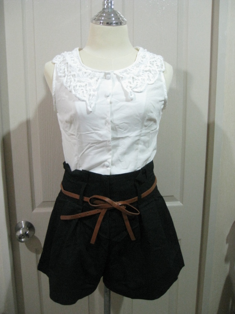 แซกสีดำคอปกสีขาวแขนแต่งระบายลูกไม้สีดำ ราคา 380 บาท