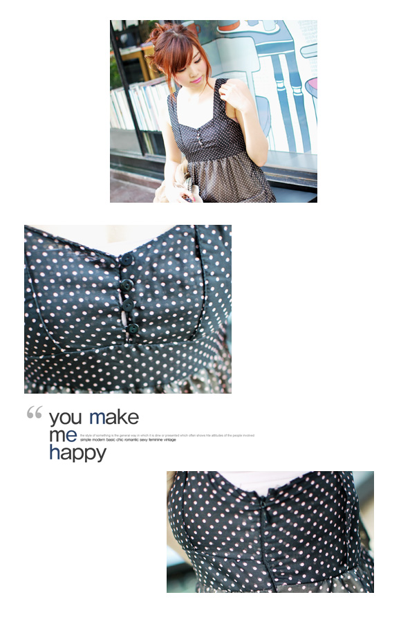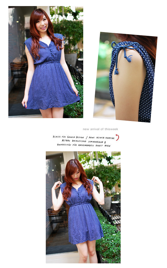 Cc045 เดรสแขนกุดลายจุดสุดเริ่ด เหลือน้ำเงิน 390-