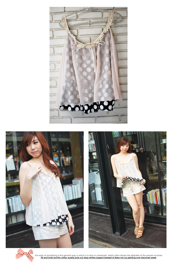 Cc072 สายเดี่ยวลูกไม้ลายจุดซีทรูหวานๆ 390-
