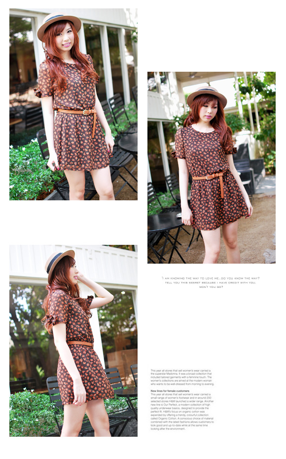 Cc073 เดรสชีฟองลายดอกน้ำตาลส้ม 450-