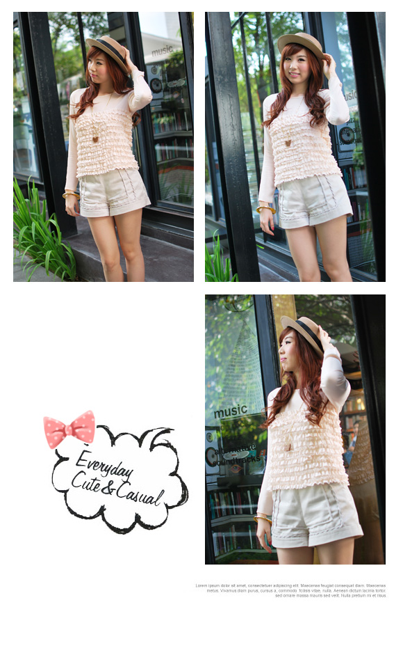 Cc074 เสื้อชีฟองแขนสี่ส่วนระบายชั้นสไตล์เกาหลี
