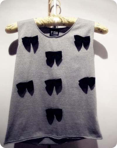 HN009 เสื้อแขนกุดผ้าสีเทา เย็บโบว์สีดำ น่ารักมาก ของ 2 SIS ขอขาย 150 บาท