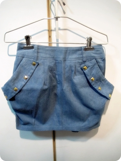 HN014 กระโปรงยีนส์สั้น ปักหมุดทอง ทรงพองแบบเก่ๆค่ะ เอาไปเลย 200 บาทค่ะ