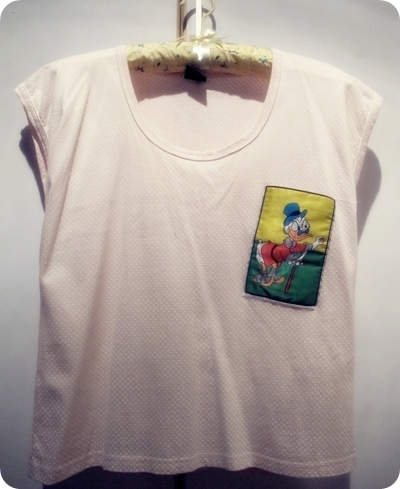 HN020 เสื้อแขนกุด แบบปล่อยๆค่ะ ลายจุด สีชมพูอ่อน กระเป๋าลาย โดนัลดัีก น่ารักมากค่ะ ใส่ 2 ครั้ง ขอขาย 200 บาทค่ะ
