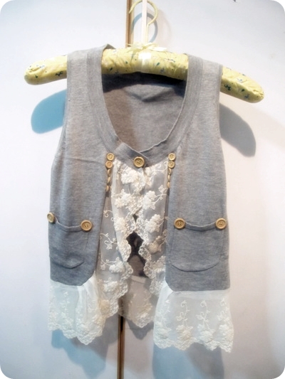 HN027 เสื้อกั๊กสีเทา ชายลูกไม้ งานฮ่องกงค่ะ สไตล์สาวหวาน ซื้อมาแพงมาก ขอขาย 300 บาทค่ะ