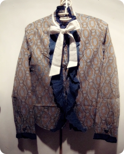 HN010 เสื้อแขนบัว แบบเก่ๆค่ะ ของ grape ลายผ้าแบบมัดย้อม ผ้าหนาค่ะ แขนซิปอินเทรนด์ ขอขาย 250 บาท