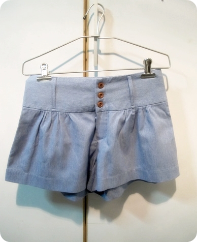 HN038 กางเกงขาสั้นบาน ผ้าลูกฟูกสียีนส์ น่ารักมากค่ะ ใส่ไปครั้งเดียว ขอขาย 150 บาทค่ะ