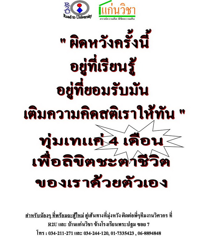 จำเป็นต้องให้งานที่ R2U สร้างในขณะนั้น รอดให้ได้ หาที่เรียนพิเศษ ดีๆ นครปฐม คณิตศาสตร์ เรียนอย่างไร ประสบความสำเร็จ แก่นวิชา มากกว่า ความรู้