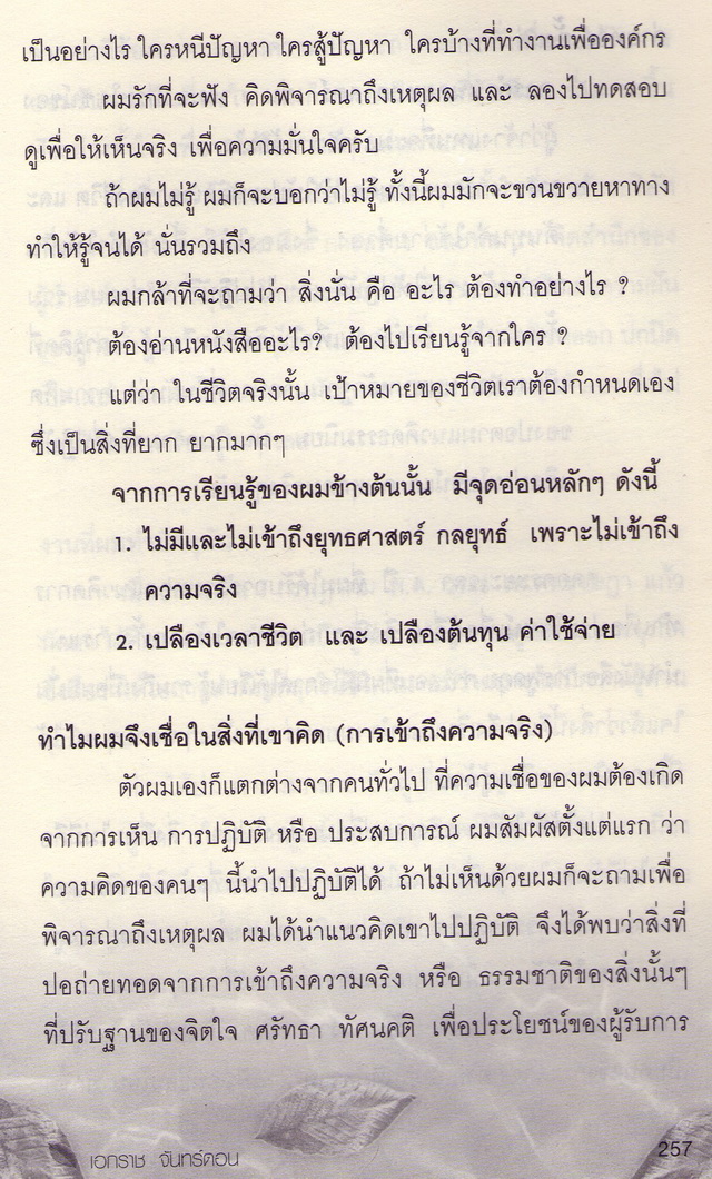 ซึ่งความรู้หนึ่งที่คุณเอกราช นำไปถ่ายทอด ที่สำคัญมาก คือ ทักษะ "คิดเป็น ก่อนทำเป็น"