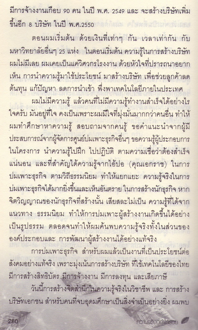 และปี 2553 นี้ สามารถนำความรู้นี้ ไปใช้ก่อตั้ง บริษัท คนก้าวหน้า จำกัด