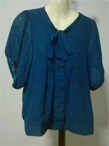 ผ้าชีฟองกระดุมหน้ามีโบว์ผูก (มีตำหนิรอยเปื้อนนิดนึงที่โบว์แต่ถ้าไม่สังเกตจะไม่เห็น) ผ้าเนื้อดีใส่สบาย