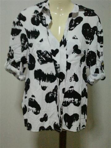 เสื้อเชิตลายขาวดำ แขนสามส่วนหรือจะพับเป็นแขนสั้นก้อได้