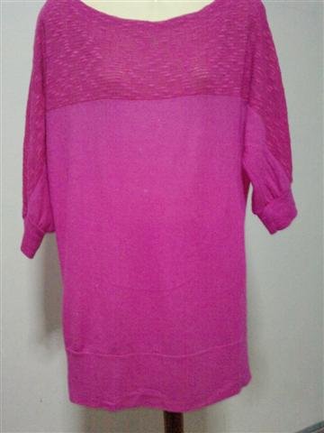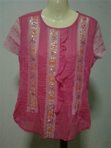 เสื้อแขนสั้นสีชมพู ปักลูกปัดเลื่อม 3 แถวด้านหน้า แขนเป็นลูกไม้