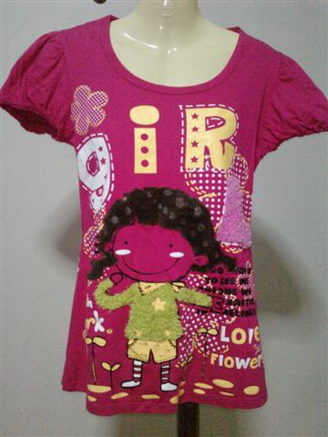 เสื้อยึดแขนสันลายการ์ตูน สีชมพูสด น่ารักมาก