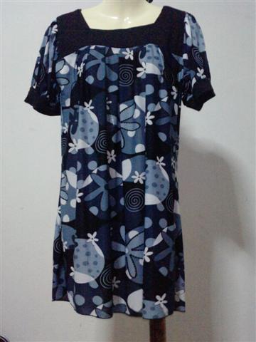 เสื้อตัวยาว ลายสีดำ คอเหลี่ยม ผ้าใส่แล้วเย็นสบาย