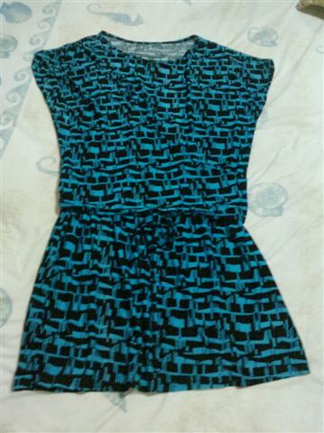 เดรสสีฟ้า-ดำ ผ้าลื่นเนื้อดี ผูกเอว