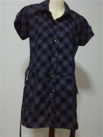 แซกลายสก็อตสีดำ กระดุหน้า มีกระเป๋า 2 ข้าง มีเข็มขัดผ้าผูกเอว