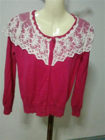เสื้อแขนยาวสีชมพู กระดุมหน้า ระบายลูกไม้สีขาว
